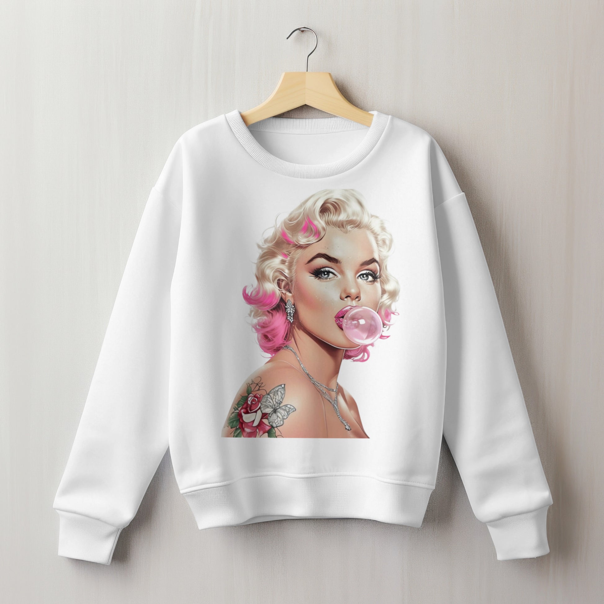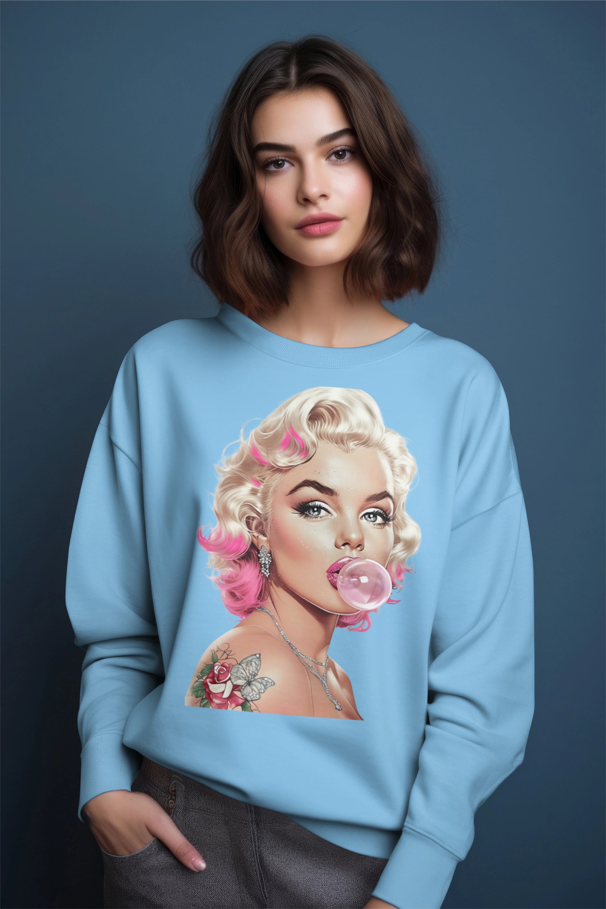Feel like a bombshell with this Kimbarli™ Bombshell Bubblegum Girl Sweatshirt featuring a retro pin-up with pink hair & tattoos. This glam pop art crewneck exudes a fun and edgy vibe, perfect for those who love unique and eye-catching fashion. Ideal for fans of retro style, pin-up art, and pop culture enthusiasts. Great for casual wear, lounging at home, or making a statement at social events and parties.