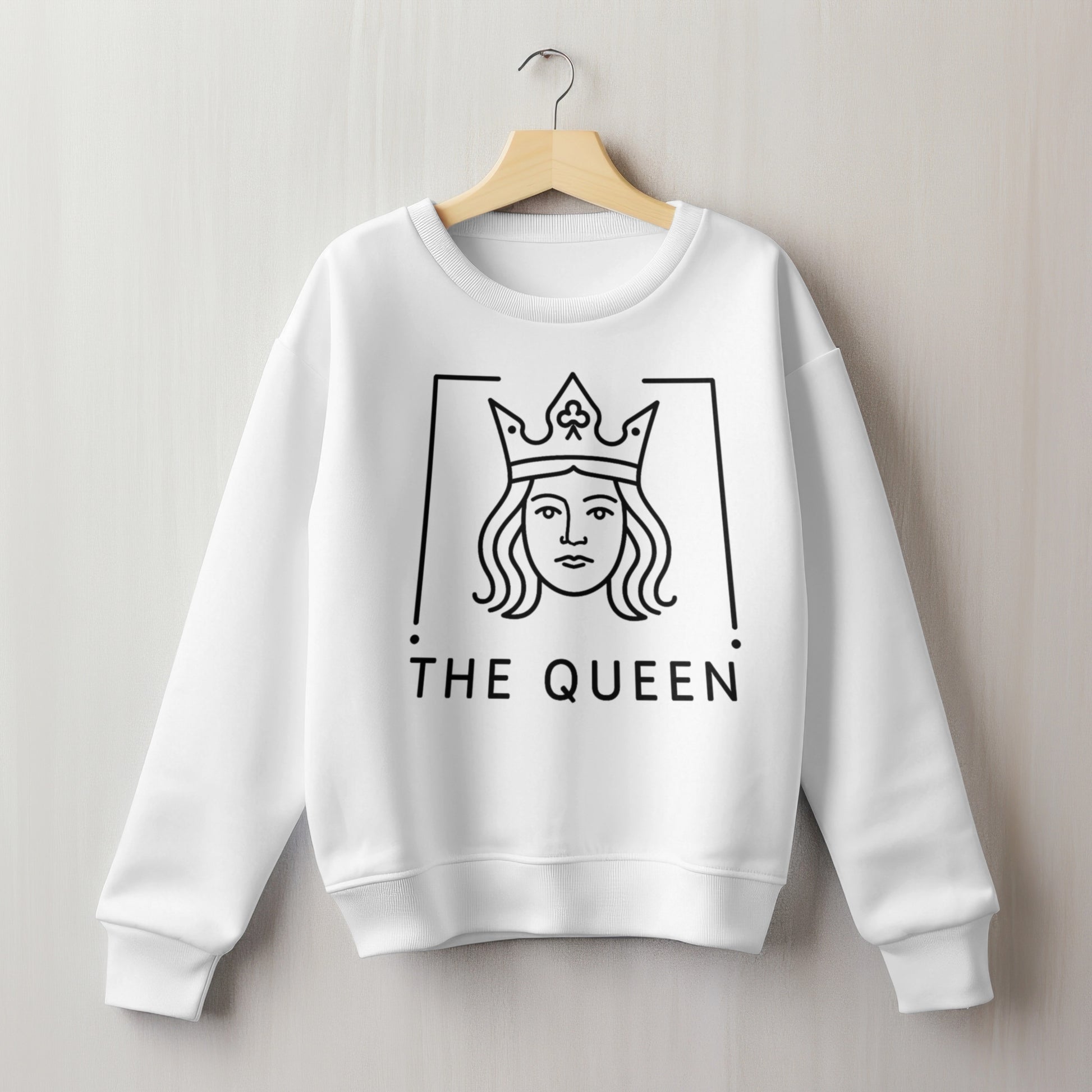 The 'The Queen' Minimalist Crown Sweatshirt exudes royalty and elegance with its minimalist crown design. Perfect for those who want to feel regal and stylish during the colder months. Ideal for adults looking to make a statement with their fashion choices, especially during special occasions like birthdays, holidays, or themed events.