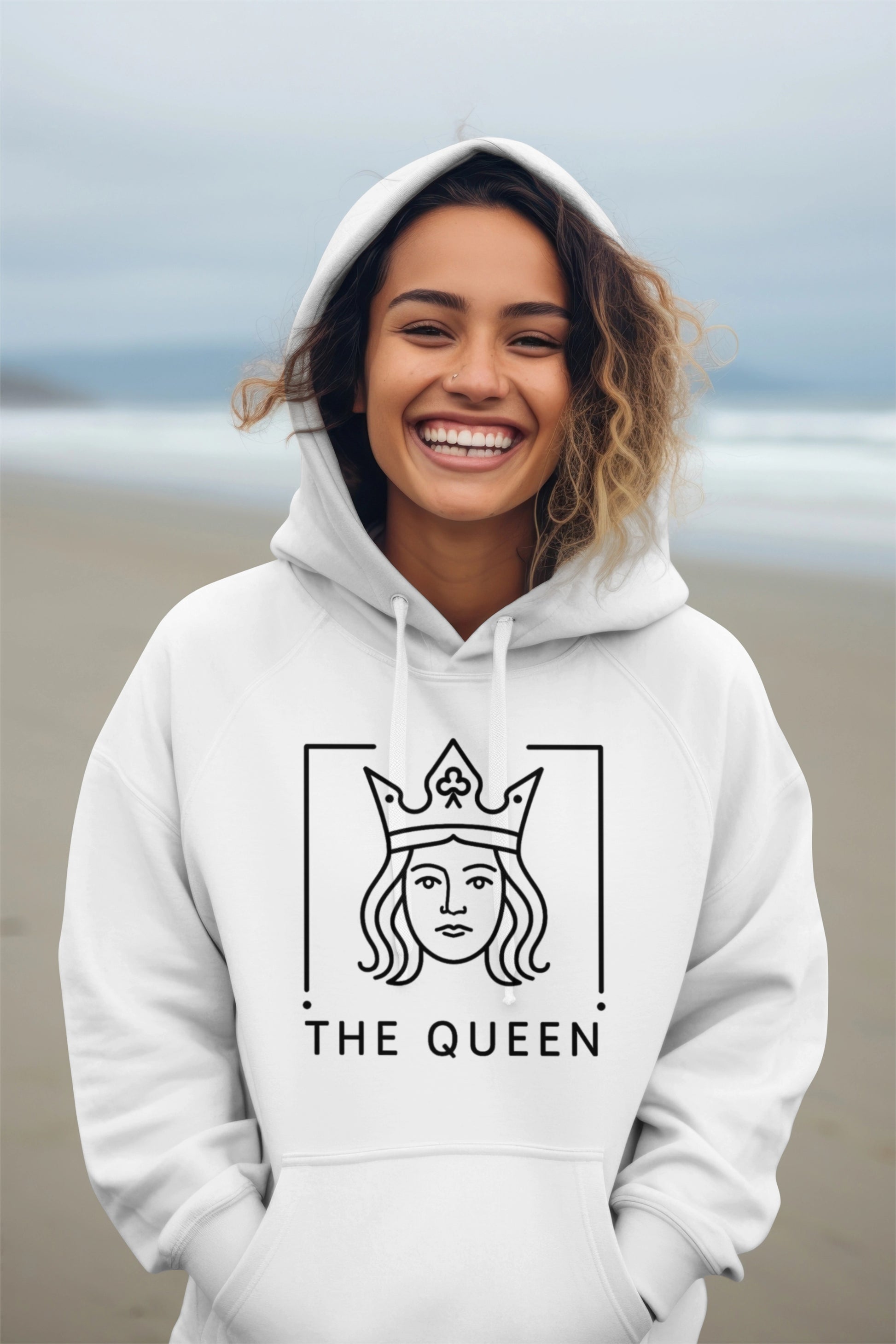 The Kimbarli “The Queen” Hoodie features a clean, modern outline of a crowned queen paired with bold typography. This minimalist design speaks volumes without saying a word. Whether you’re lounging by the beach, running errands, or holding court in your daily life, this hoodie is your reminder: You are the queen.