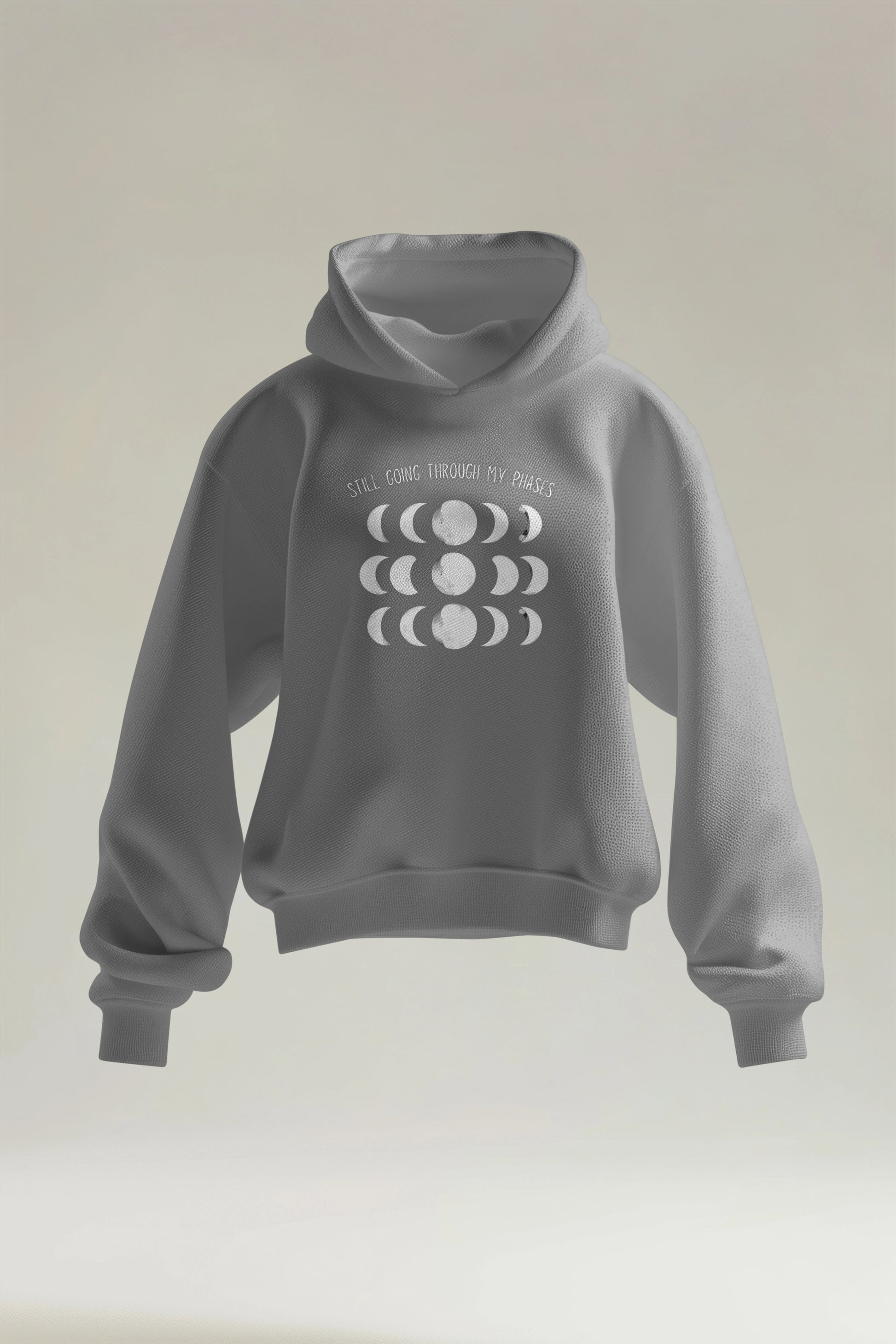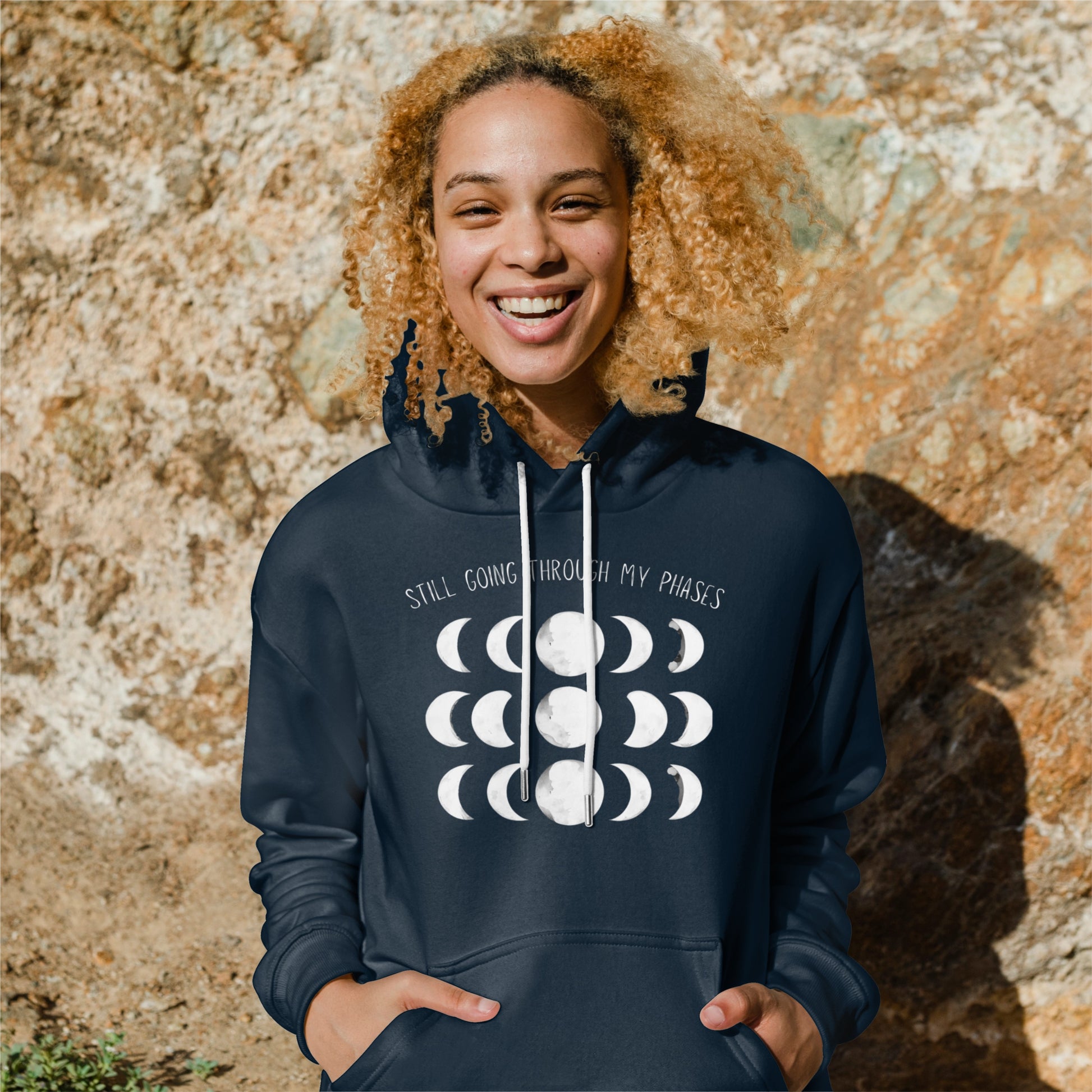 The Kimbarli Still Going Through My Phases Hoodie is for the dreamers, the feelers, and the evolving souls. Featuring a bold moon cycle design and the phrase “Still Going Through My Phases,” this navy hoodie captures cosmic vibes and emotional honesty in one cozy layer.