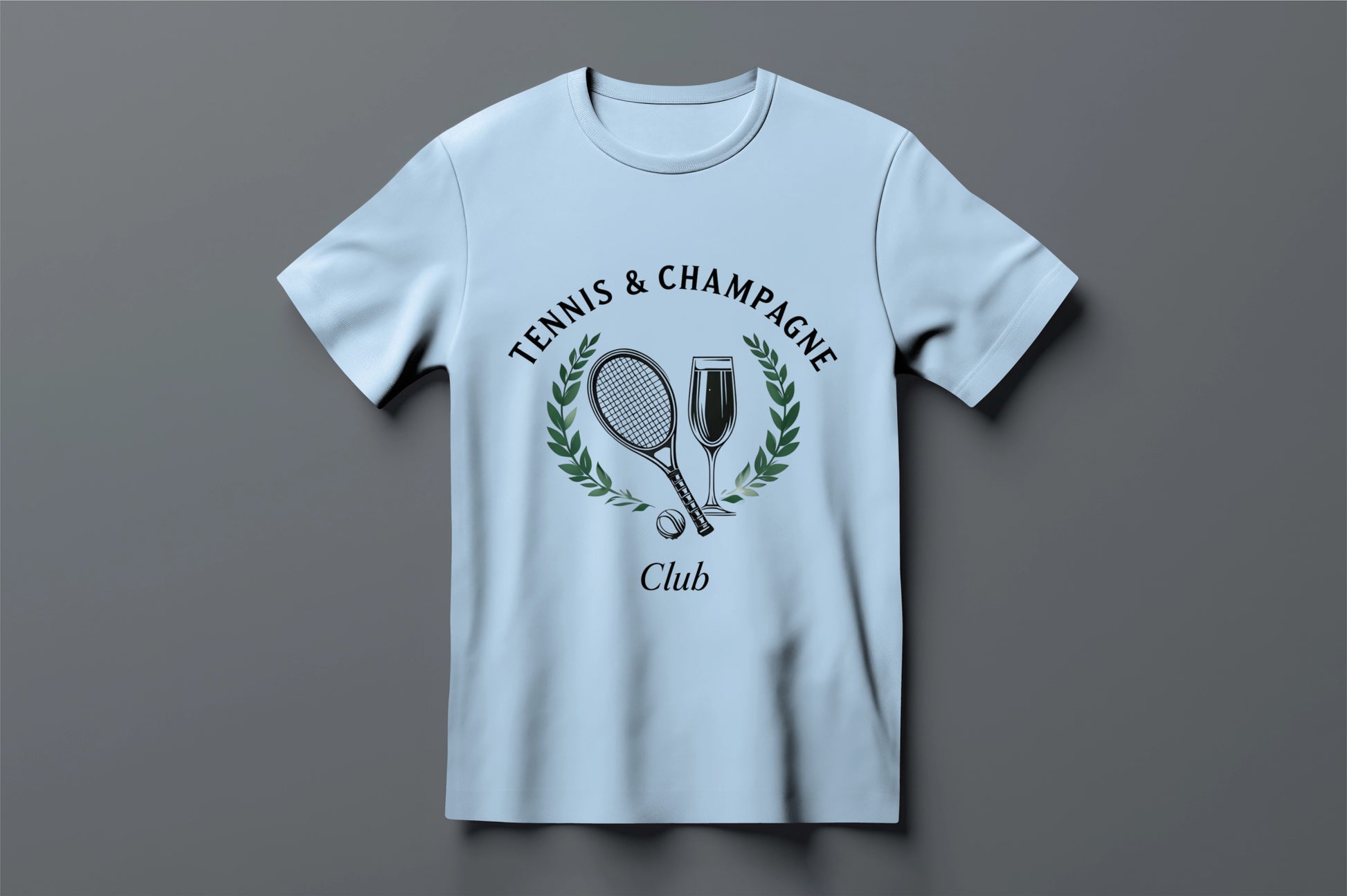 Elevate your casual style with the Kimbarli Tennis & Champagne Club Tee, where sporty sophistication meets effortless luxury. Featuring a timeless design of a tennis racket, ball, and champagne glass wrapped in elegant laurel leaves, this premium graphic tee captures the spirit of leisure, class, and fun.