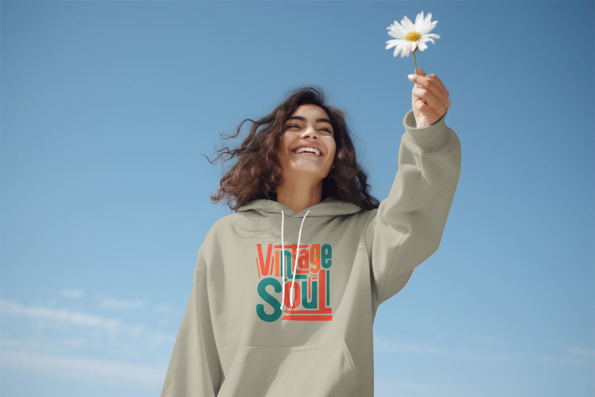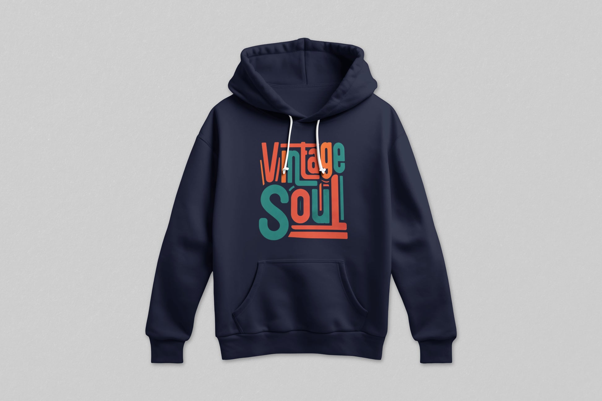 The Kimbarli Vintage Soul Hoodie is a throwback to the golden days of groovy vibes and timeless flair. Featuring a retro-style “Vintage Soul” print in bold teal and orange typography on a deep navy hoodie, this piece is made for old souls with fresh taste.